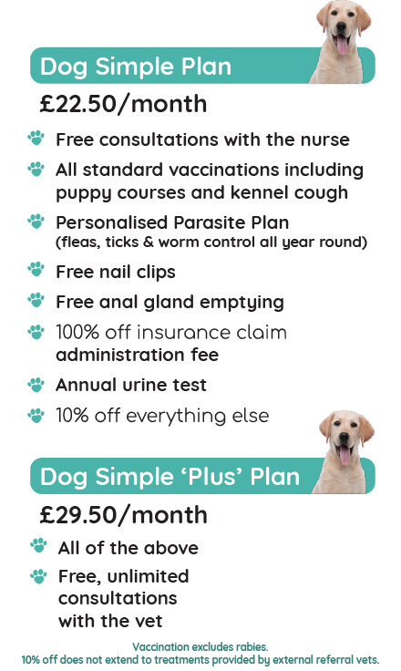 Don’t want the consultations? Then choose the Simple plan for dogs and cats which includes all of the above but no consultations included